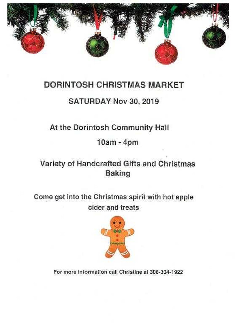 Enjoy some Christmas Shopping in Dorintosh at the Christmas Market Saturday, November 30 at the Community Hall.