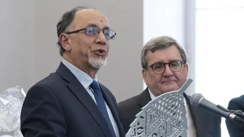 The mayor was joined for the public signing Thursday by Boufeldja Benabdallah, president of the main mosque in Quebec City, who thanked Labeaume for pushing ahead with the project and avoiding a divisive debate.