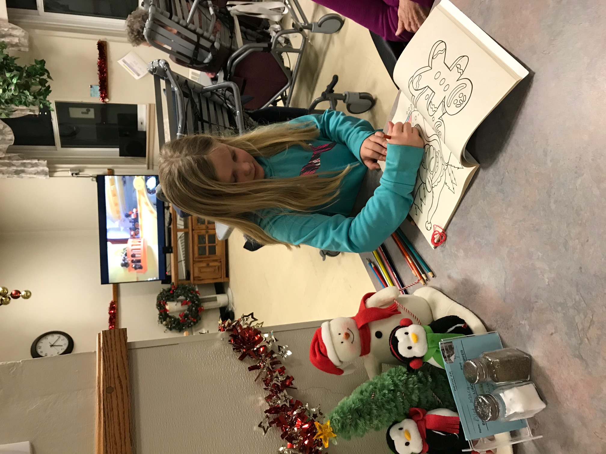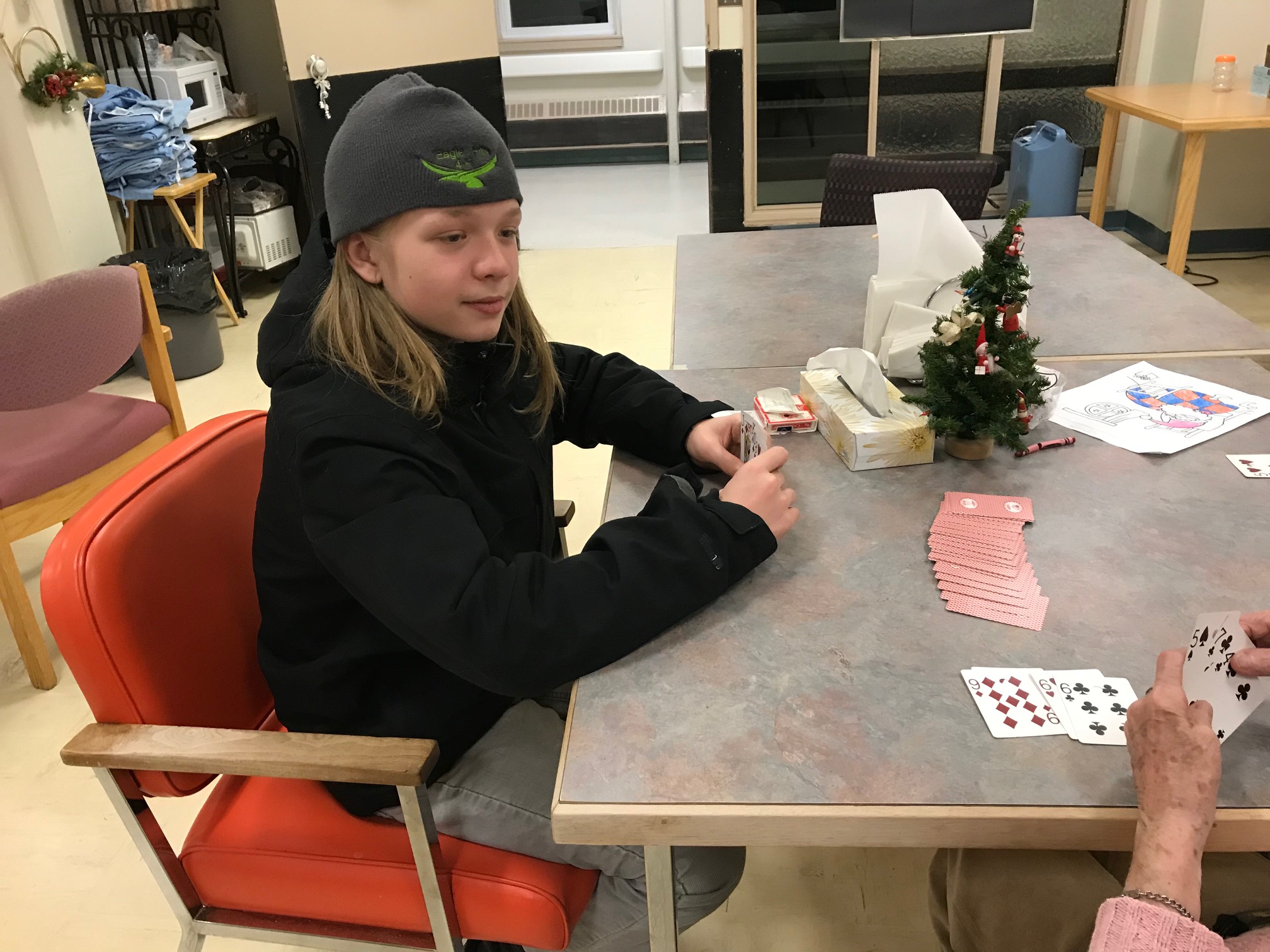 On the 9th of December, we went to the Battlefords District Care Centre to have a visit with the elderly. We did many fun things at the Care Centre, such as playing both card games and board games. We, also, enjoyed a little bit of colouring with them. We had to help remind them on how to play some of the games. Overall, it was a great fun time for them as it was for us.