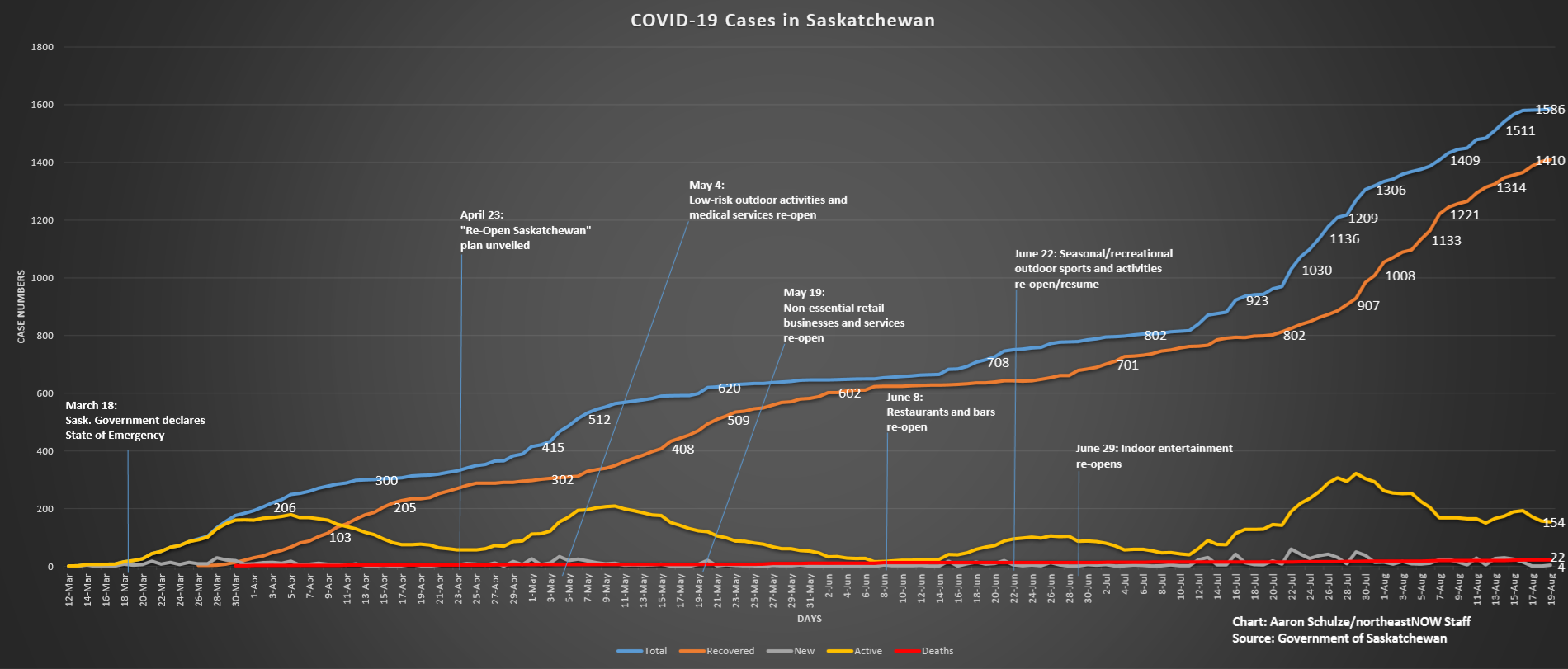 There are four new cases of COVID-19 in Saskatchewan, bringing the total amount to 1,586.