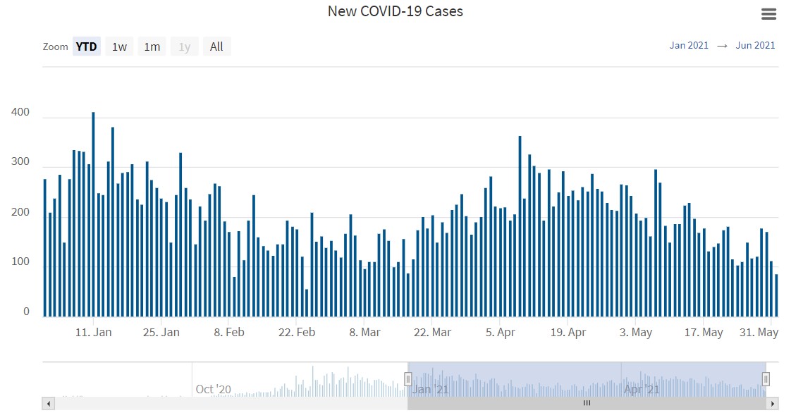 New COVID cases drop below 100 for first time in almost three months
