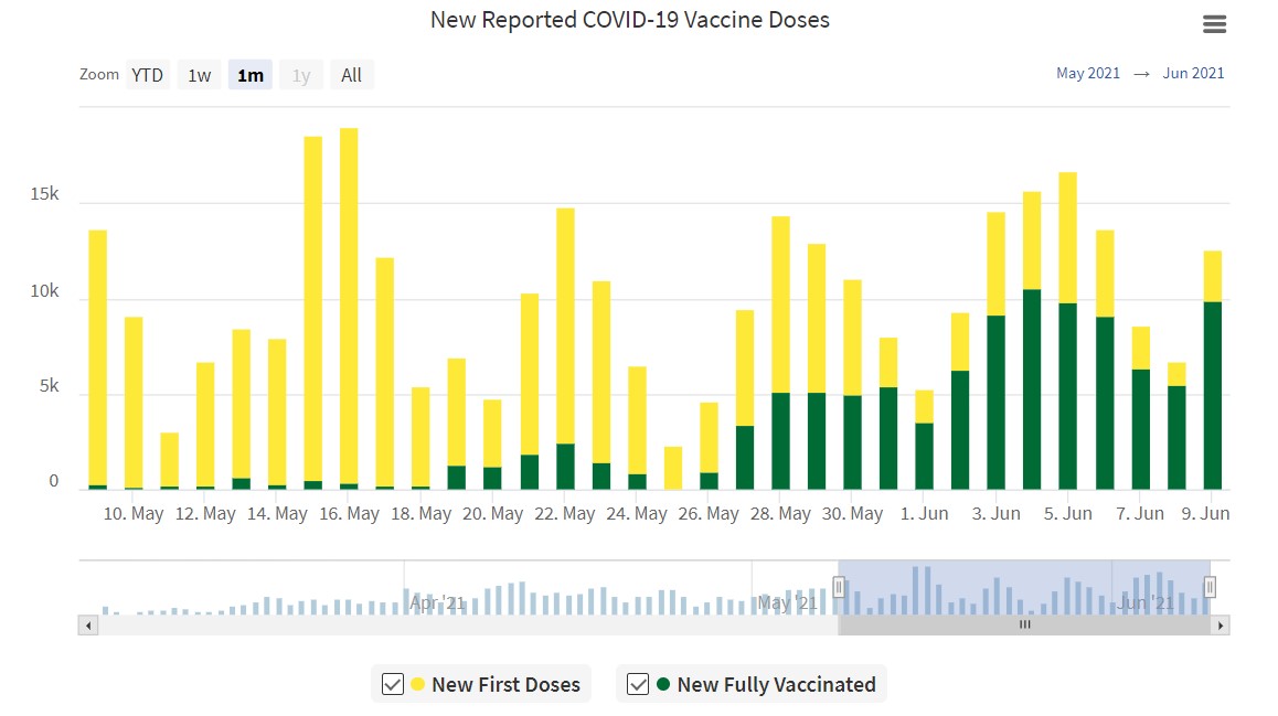 With only 57 new cases of COVID-19 and 171 recoveries to report in the province today, active case numbers have dropped below 1,000 cases for the first time since Nov. 7, 2020.