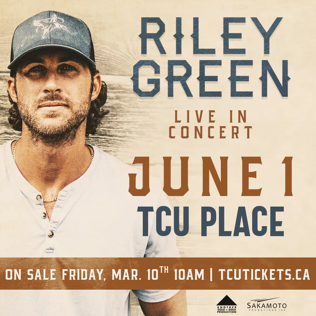 By Grant Schutte Riley Green coming to Saskatoon!! Mar 9, 2023 | 8:05 AM Share on Facebook Share on Bluesky Share on X Copy Link https://media.socastsrm.com/wordpress/wp-content/blogs.dir/845/files/2023/03/riley-green-coming-to-saskatoon.mp3 Riley Green June 1st, TCU Place.. Tickets on sale Friday March 10th, 10am.. tcuticketsca or 306-975-7799.. https://media.socastsrm.com/wordpress/wp-content/blogs.dir/845/files/2023/03/riley-green-coming-to-saskatoon.mp3