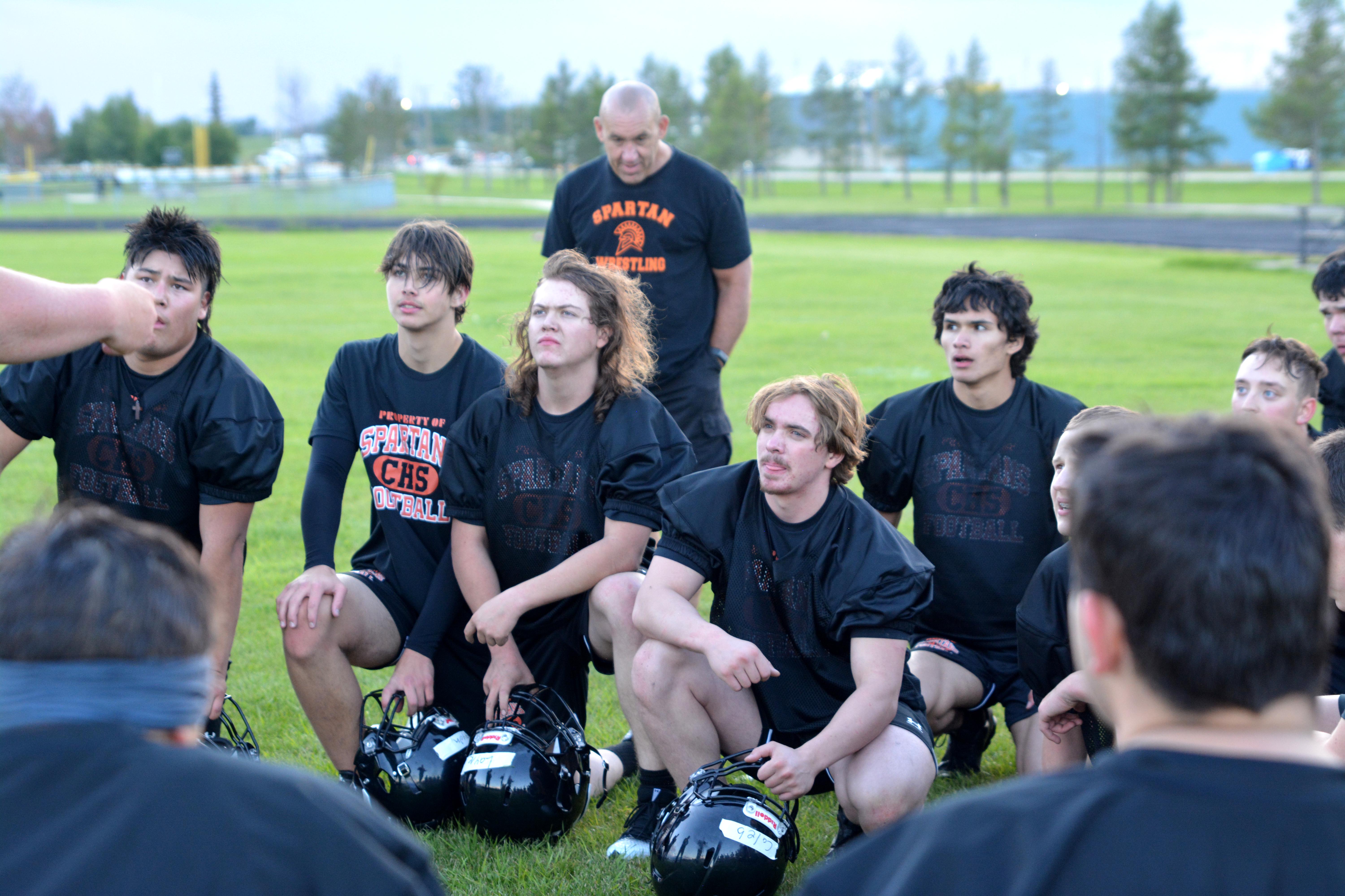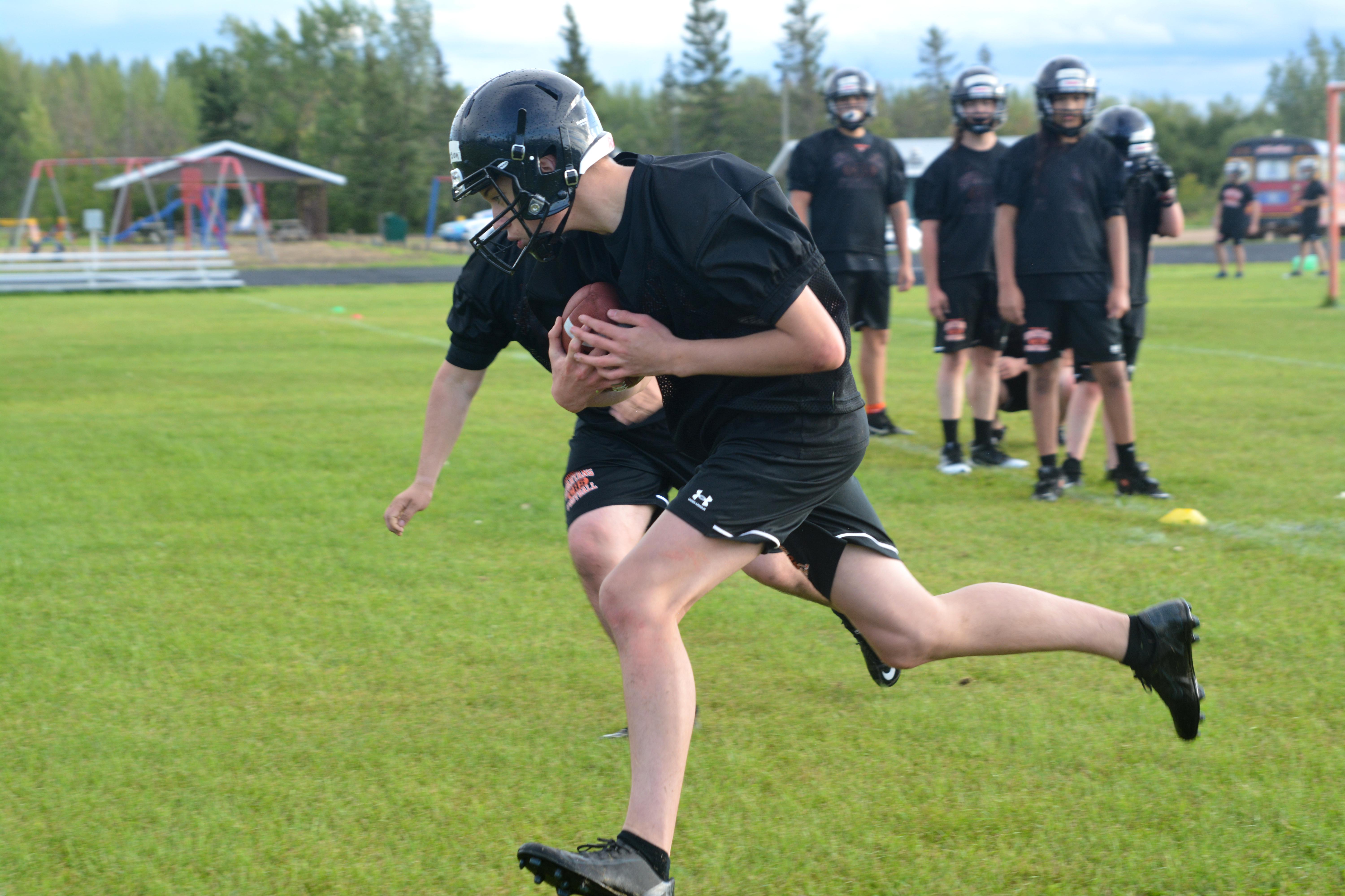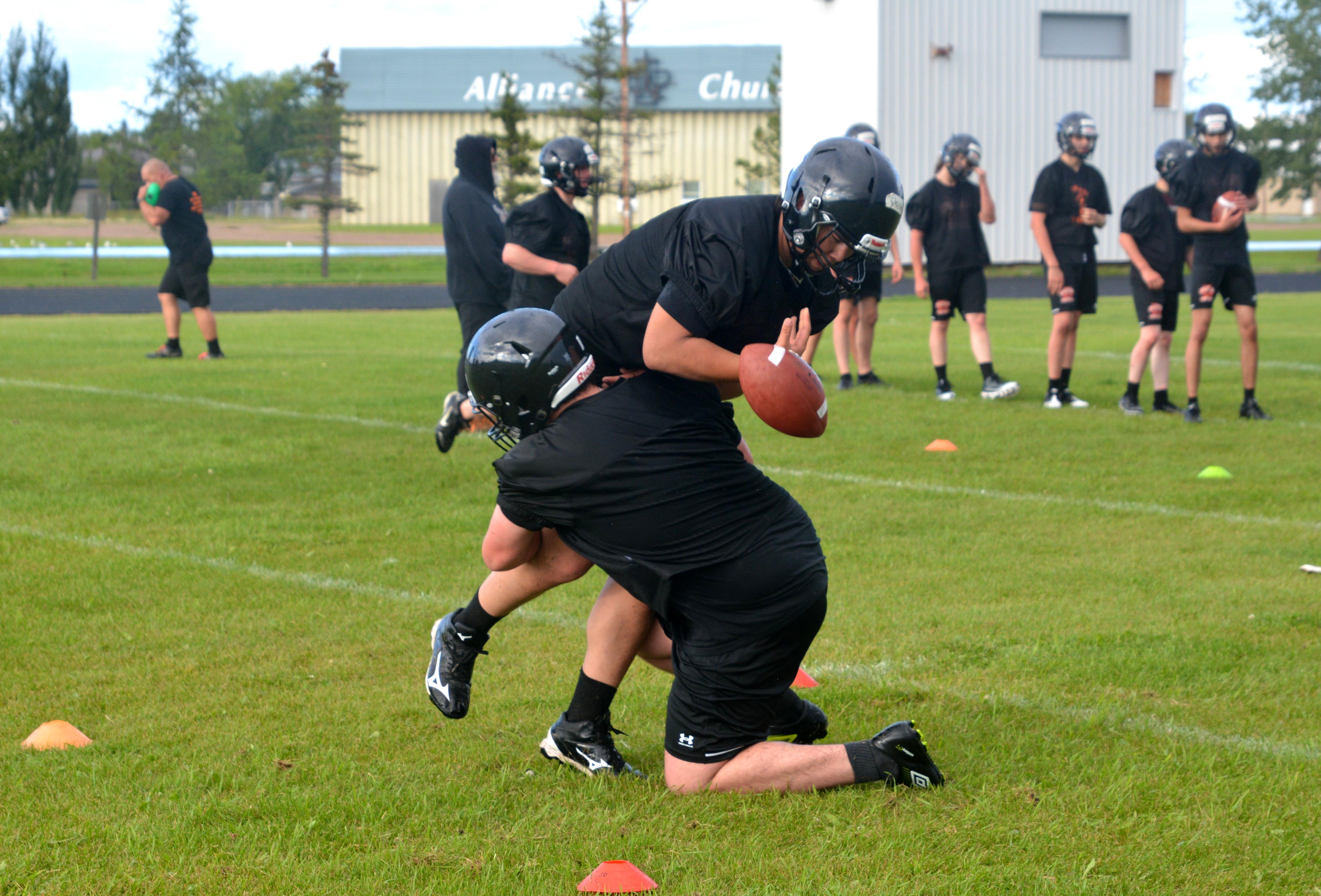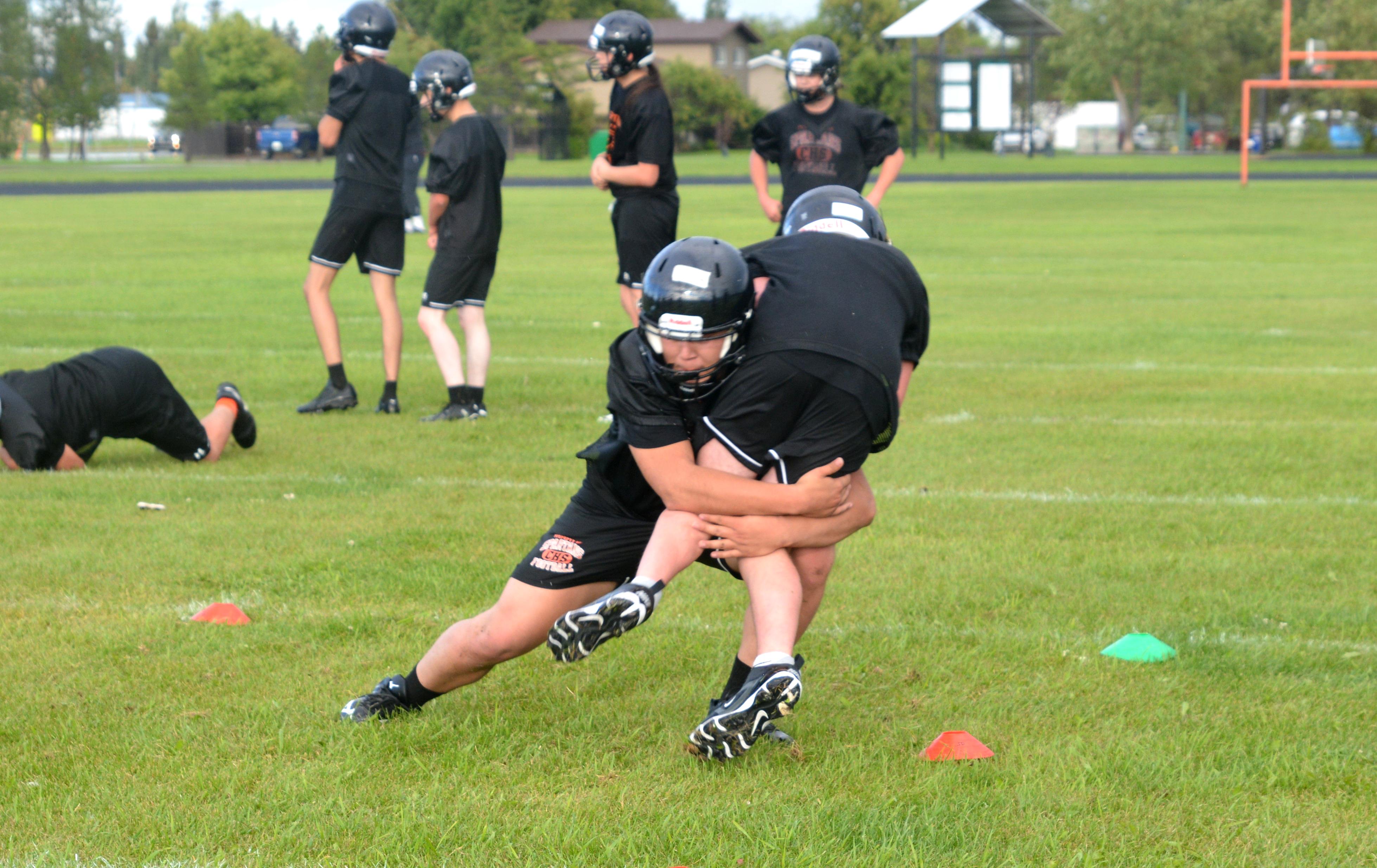The clash of helmets and the sweat of hard work filled Meadow Lake’s Lion’s Park Thursday as rain showers gave way to bright sunshine, marking the return of Carpenter High School’s football team for the first time since 2019.