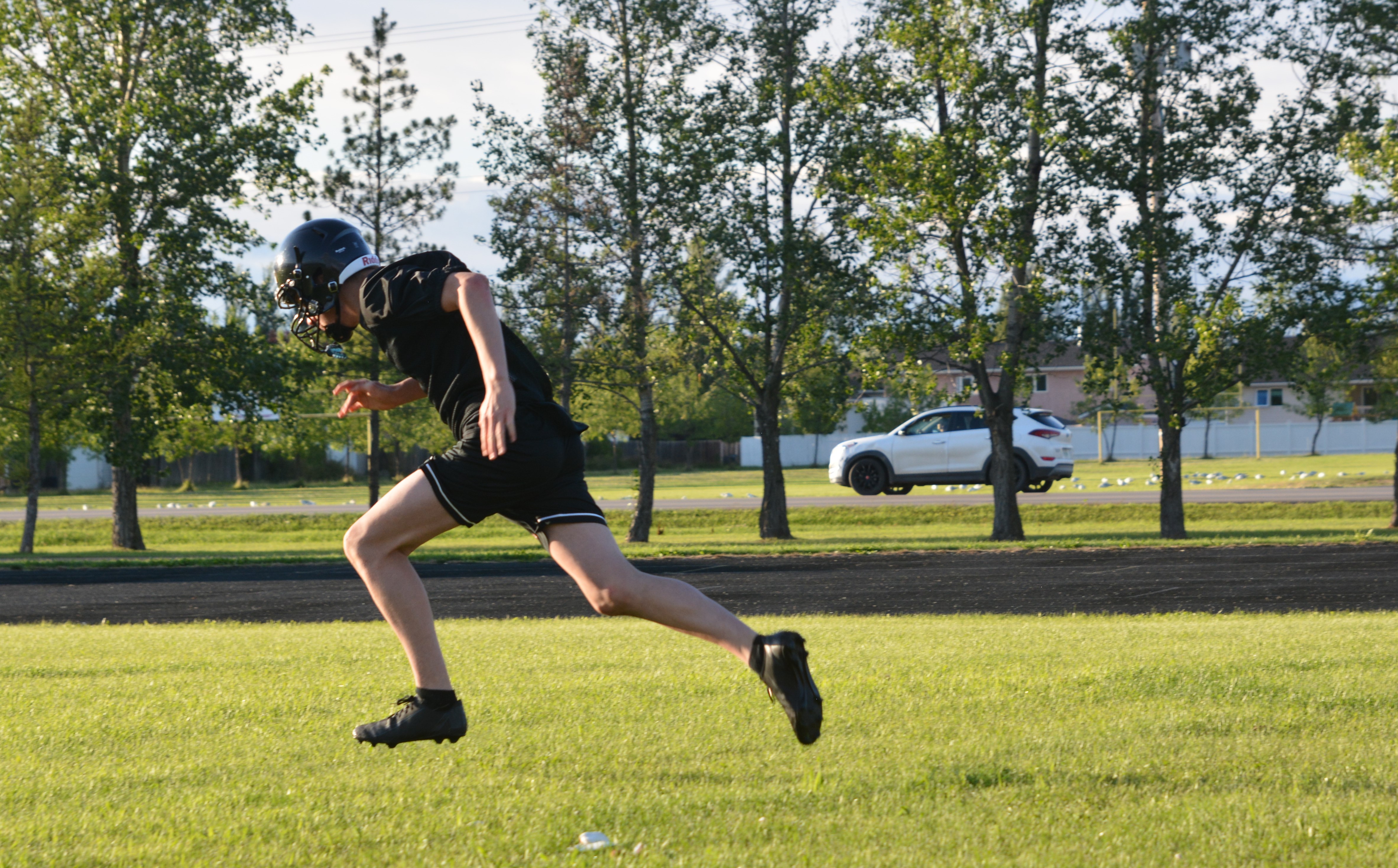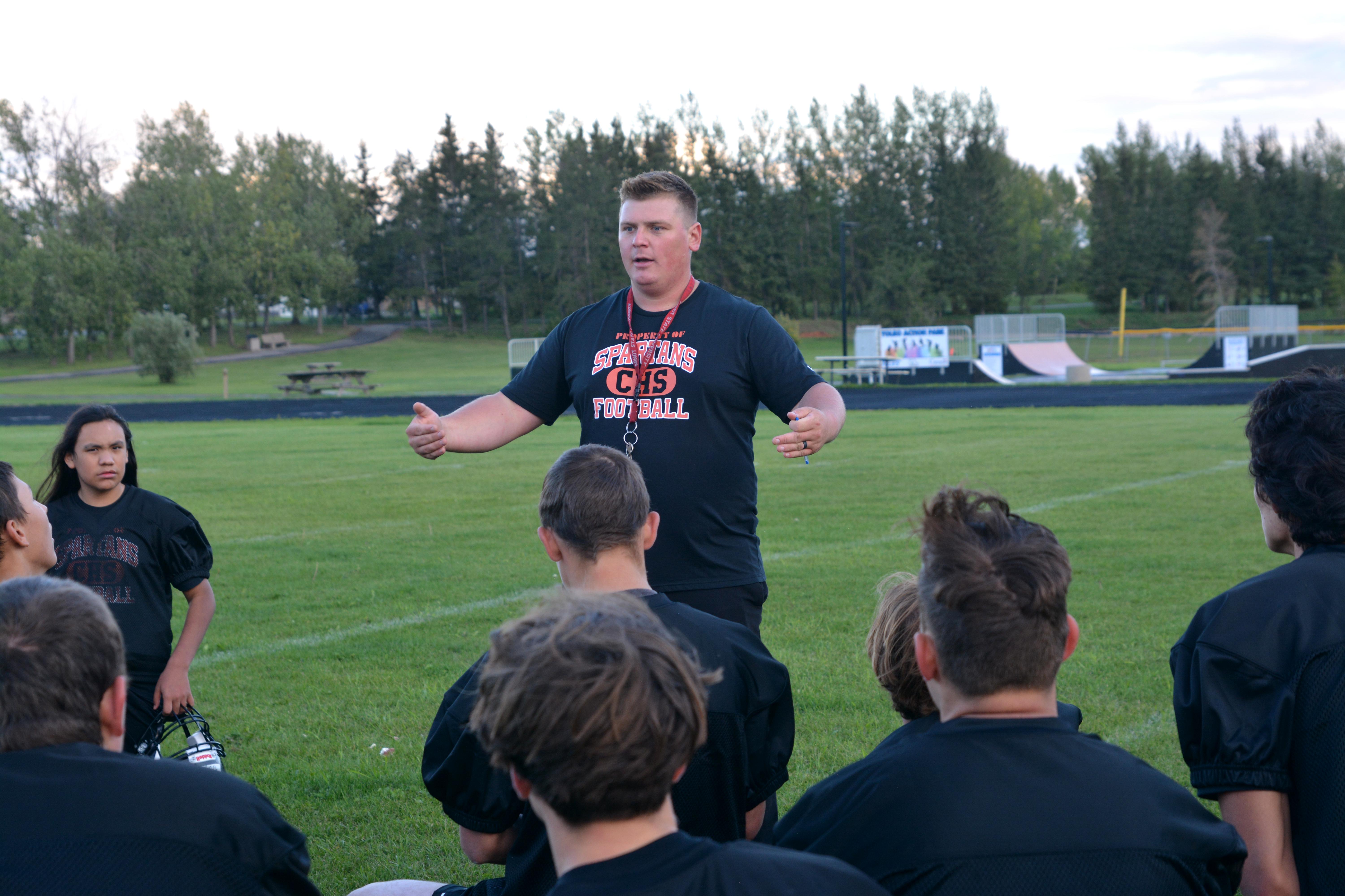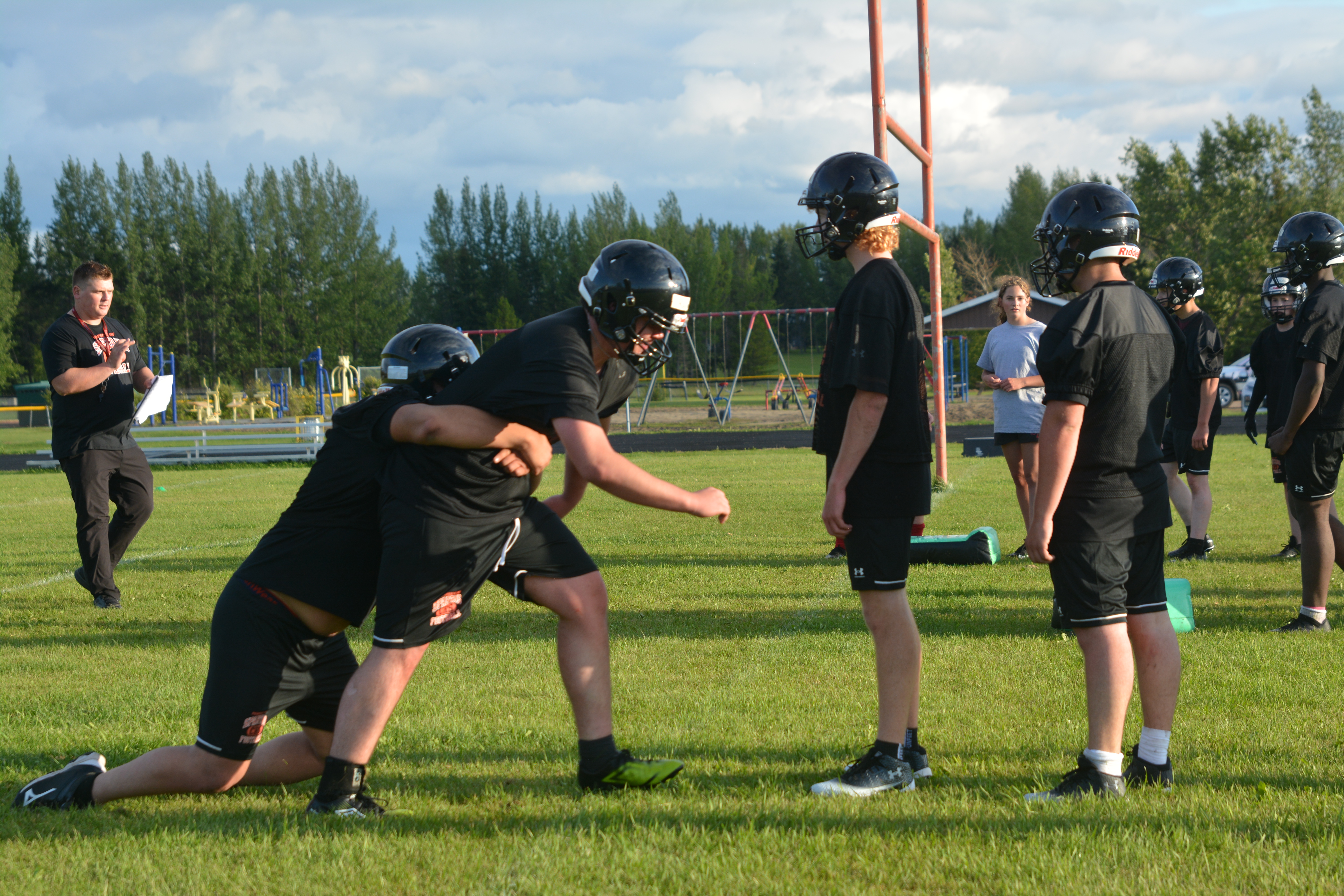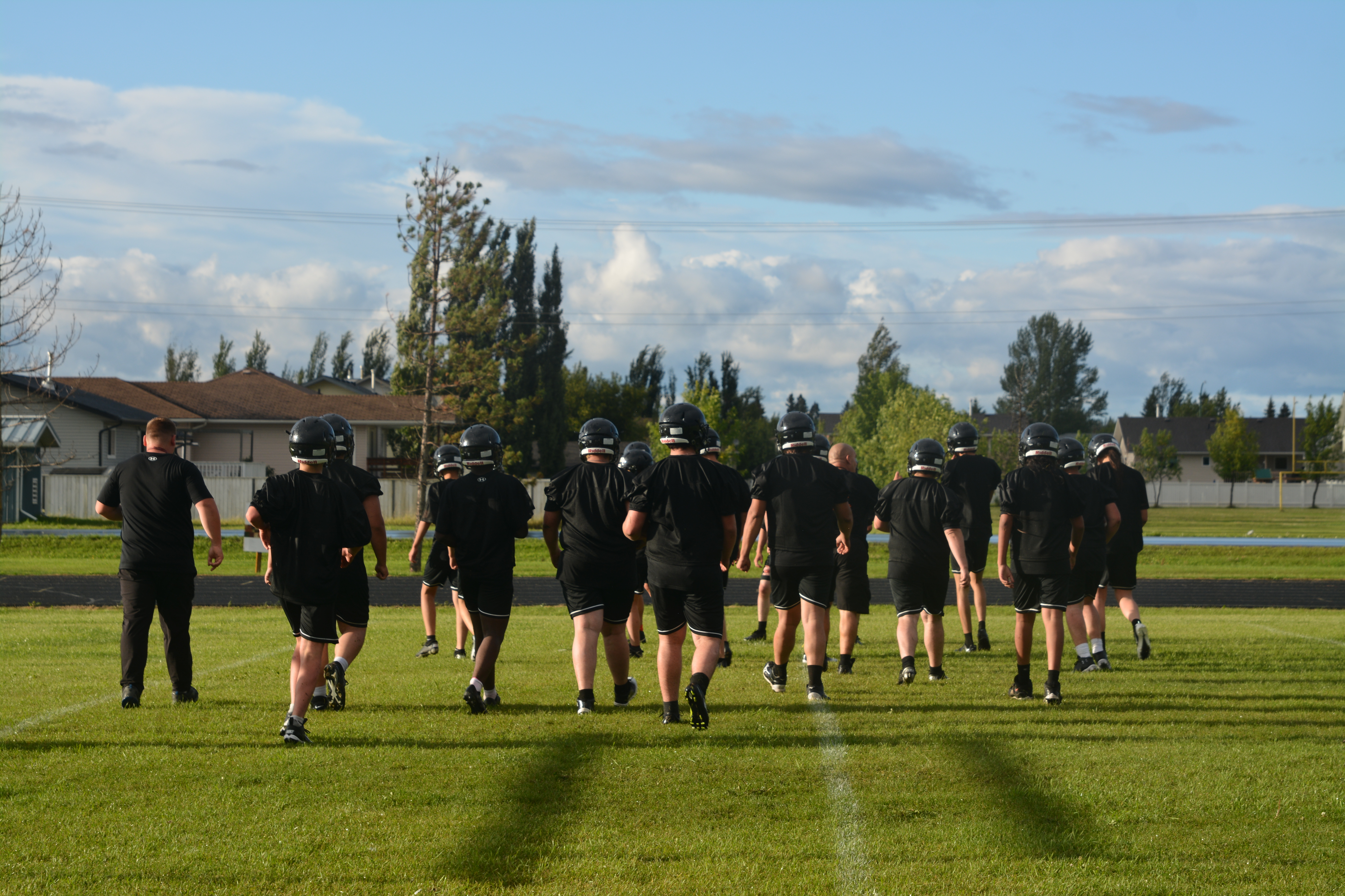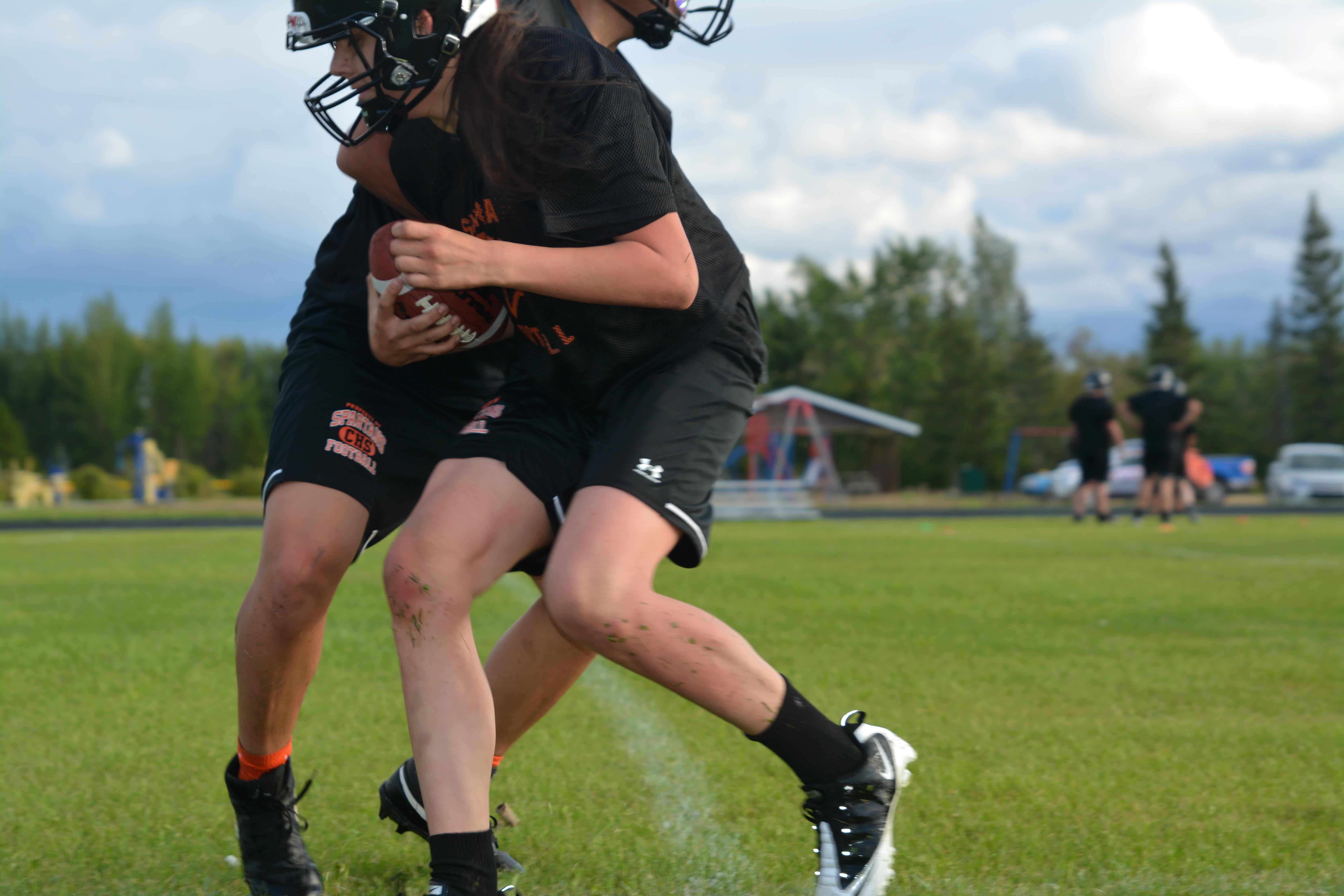The clash of helmets and the sweat of hard work filled Meadow Lake’s Lion’s Park Thursday as rain showers gave way to bright sunshine, marking the return of Carpenter High School’s football team for the first time since 2019.