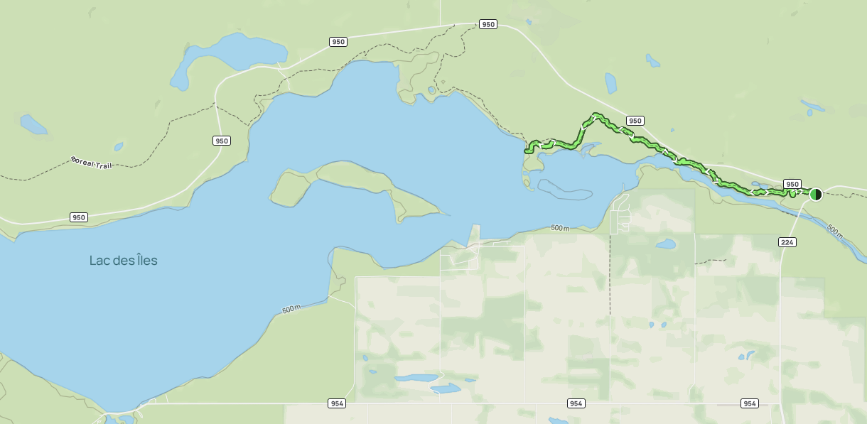Boreal Trail: Lac Des Iles – a moderately challenging 16.4 km trail located on the East side of Lac Des Iles, typically taking four hours to complete. Adventurers often see tracks of various animals, including coyotes, wolves, and bears.