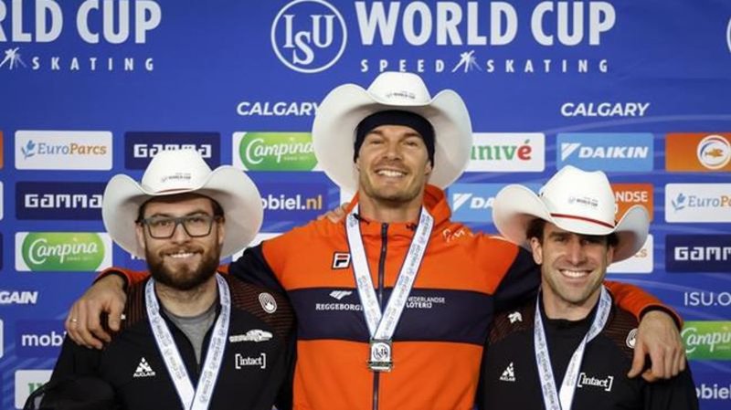 CALGARY - Hein Otterspear of the Netherlands won the men's 1,000 metres with Canada's Laurent Dubreuil and Antoine Glinas-Beaulieu second and third respectively Sunday at a speedskating World Cup. Ott...