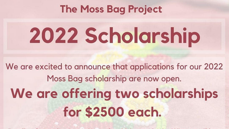 The Moss Bag Project 2022 Scholarship consists of two scholarships of $2,500.Those eligible are self-identified mother or two spirit parent attending or planning to attend post secondary education.See...