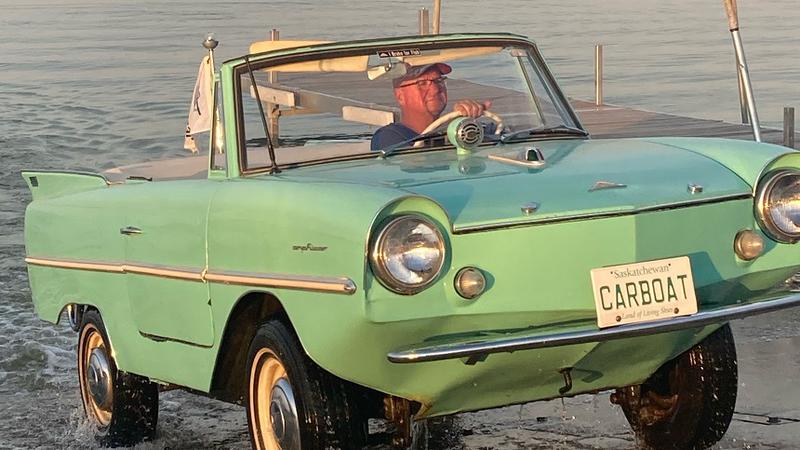 Sask. couple driving – and floating – through summer in Amphicar