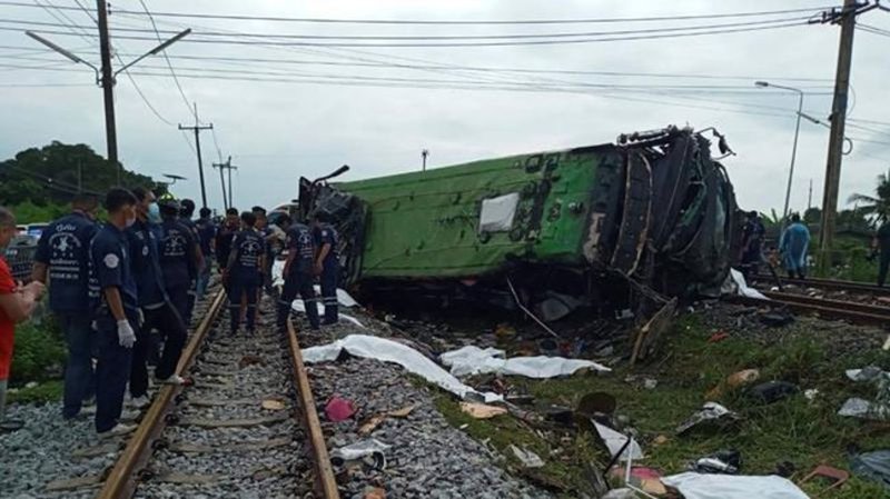 Bus-train collision in central Thailand leaves 17 dead