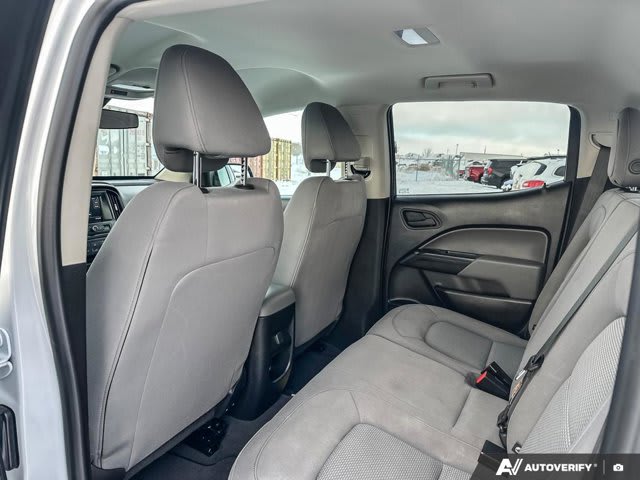 This Chevrolet Colorado delivers a Gas V6 3.6L/ engine powering this Automatic transmission. ENGINE, 3.6L DI DOHC V6 VVT (308 hp [230.0 kW] @ 6800 rpm, 275 lb-ft of torque [373 N-m] @ 4000 rpm) (STD), Windows, power with driver Express-Up and Down, Wheels, 17 x 8 (43.2 cm x 20.3 cm) Ultra Silver Metallic steel.* This Chevrolet Colorado Features the Following Options *Wheel, spare, 17 x 8 (43.2 cm x 20.3 cm) steel (Included and only available with (LGZ) 3.6L DI DOHC V6 engine or (LWN) 2.8L Duramax Turbo-Diesel engine.), Visors, driver and front passenger with passenger vanity mirror, USB data ports, 2 includes auxiliary input jack, located on the front console, Transfer case, electric, 2-speed, Traction control, electronic, Tow/Haul Mode (Included and only available with (LGZ) 3.6L DI DOHC V6 engine or (LWN) 2.8L Duramax Turbo-Diesel engine. Standard on Crew Cab Long Box.), Tires, 255/65R17 all-season, blackwall, Tire, spare 255/65R17 all-season, blackwall, Tire Pressure Monitoring System (does not apply to spare tire), Tire Fill Alert provides an audible and visual indication when tire pressure is added to a tire that is low. Aids to achieve optimal tire pressure.* Stop By Today *For a must-own Chevrolet Colorado come see us at Bridges Chevrolet Buick GMC, 2501 99th Street, North Battleford, SK S9A 2X6. Just minutes away!