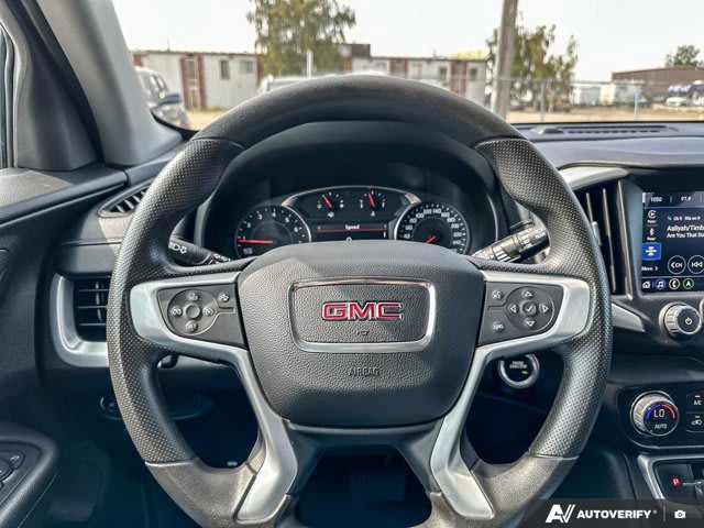 This GMC Terrain boasts a Turbocharged Gas/E15 I4 1.5L/92 engine powering this Automatic transmission. ENGINE, 1.5L TURBO DOHC 4-CYLINDER, SIDI, VVT (170 hp [127.0 kW] @ 5600 rpm, 203 lb-ft of torque [275.0 N-m] @ 2000 – 4000 rpm) (STD), Wireless Apple CarPlay/Wireless Android Auto, Windows, power with rear Express-Down.* This GMC Terrain Features the Following Options *Windows, power with front passenger Express-Down, Window, power with driver Express-Up/Down, Wi-Fi Hotspot capable (Terms and limitations apply. See onstar.ca or dealer for details.), Wheels, 17 x 7 (43.2 cm x 17.8 cm) Silver painted aluminum, Wheel, spare, 16 (40.6 cm) steel, USB data ports, 2, one type-A and one type-C includes auxiliary input jack, located in front centre storage bin, USB charging-only ports, 2, located on the rear of the centre console, Trim, Black lower body, Transmission, 9-speed automatic 9T45, electronically-controlled with overdrive, Trailering provisions, 1500 lbs. (680 kg).* Visit Us Today *Stop by Bridges Chevrolet Buick GMC located at 2501 99th Street, North Battleford, SK S9A 2X6 for a quick visit and a great vehicle!