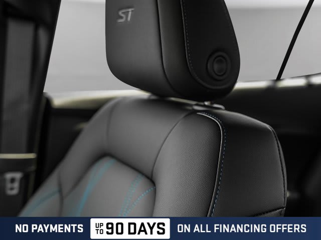 EBONY SEATS AND INTERIOR WITH SANTORINI BLUE STITCHING LEATHERETTE SEATS