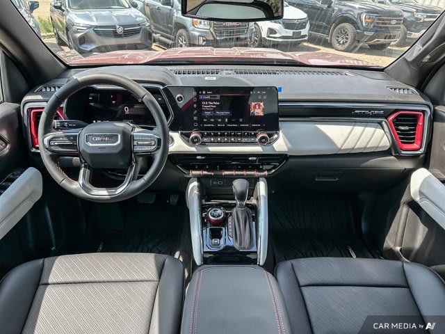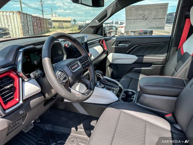 This GMC Canyon delivers a Turbocharged Gas I4 2.7L/ engine powering this Automatic transmission. WIRELESS PHONE CHARGING, FOR PORTABLE DEVICES, VOLCANIC RED TINTCOAT, TRANSMISSION, 8-SPEED AUTOMATIC, 8L80 (STD).*This GMC Canyon Comes Equipped with These Options *TECHNOLOGY PLUS PACKAGE includes (KSG) Adaptive Cruise Control, (UKK) Rear Pedestrian Alert, (UV2) HD Surround Vision, (CAC) Sunroof, (UQA) Bose Sound System, (AKK) laminated acoustic windshield glass and (UV6) Multicolour 6.3 Diagonal Head-Up Display, AT4 PREMIUM PACKAGE includes (HX6) Jet Black/Timber perforated leather-appointed front seating surfaces, (A45) Driver memory recall, (A7J) 6-way front passenger seat, (AT9) Power Lumbar front passenger seat, (DA5) Rear Seat Centre Arm Rest, (E90) Driver seat back pocket, (K7A) Wireless charging, (KI3) heated steering wheel and (KU9) Ventilated driver and front passenger seats , REAR AXLE, 3.42 RATIO, OBSIDIAN RUSH, PERFORATED LEATHER-APPOINTED FRONT SEATS, LPO, HARD FOLDING TRUCK BED COVER BY REALTRUCK ADVANTAGE (dealer-installed), LPO, BLACK BADGES (dealer-installed), ENGINE, TURBOMAX (310 hp [231 kW] @ 5600 rpm, 430 lb-ft of torque [583 Nm] @ 3000 rpm) (STD), ENGINE BLOCK HEATER, AT4 PREFERRED EQUIPMENT GROUP includes standard equipment, Wireless Apple CarPlay/Wireless Android Auto.* Visit Us Today *Stop by Bridges Chevrolet Buick GMC located at 2501 99th Street, North Battleford, SK S9A 2X6 for a quick visit and a great vehicle!