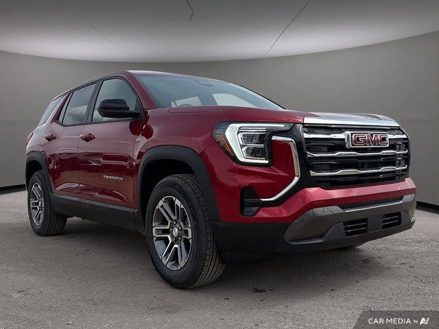This GMC Terrain boasts a Turbocharged Gas I4 1.5L/-TBD- engine powering this Automatic transmission. VOLCANIC RED TINTCOAT, TRANSMISSION, 8-SPEED AUTOMATIC, ELECTRONICALLY-CONTROLLED WITH OVERDRIVE includes Driver Shift Control (STD), ENGINE, 1.5L TURBO DOHC 4-CYLINDER, SIDI, VVT (STD).*This GMC Terrain Comes Equipped with These Options *ENGINE BLOCK HEATER, AFTER DARK, PREMIUM CLOTH SEAT TRIM, Wireless Apple CarPlay/Wireless Android Auto, Windows, express up/down driver and express down all passengers, Window, rear side, solar absorbing, privacy tinting, Wi-Fi Hotspot capable (Terms and limitations apply. See onstar.com or dealer for details.), Wheels, 17 (43.2 cm) Grazen Metallic, machined aluminum, Wheel, spare, 17 (43.2 cm) steel, Visors, driver and front passenger illuminated vanity mirrors covered, USB ports, 2, one type A and one type-C, data/charge, located in the front area of the centre console.* Stop By Today *A short visit to Bridges Chevrolet Buick GMC located at 2501 99th Street, North Battleford, SK S9A 2X6 can get you a trustworthy Terrain today!