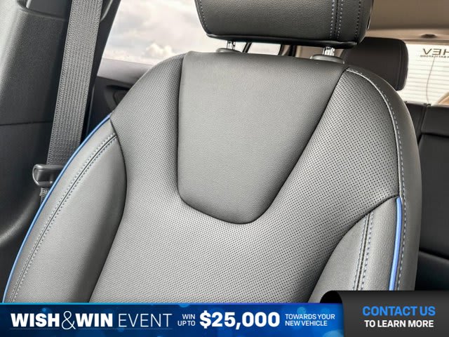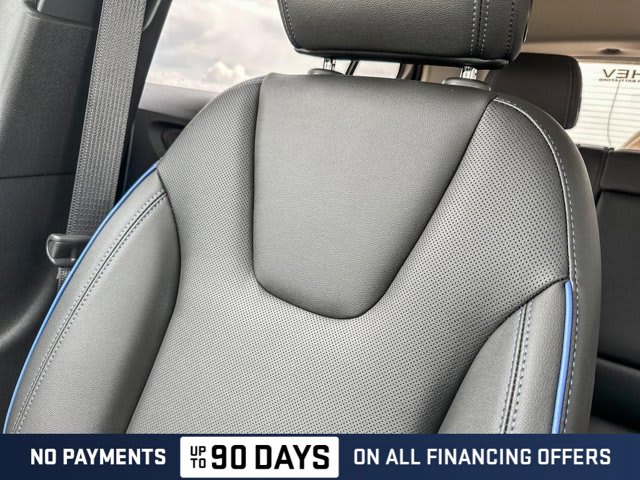 EBONY SEATS AND INTERIOR WITH SANTORINI BLUE STITCHING LEATHERETTE SEAT TRIM