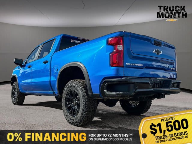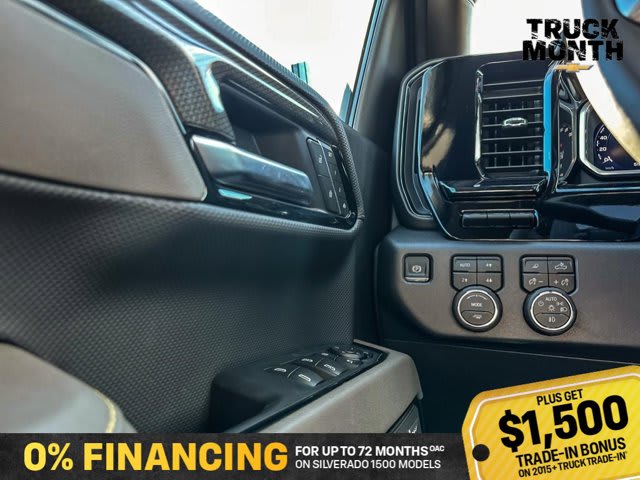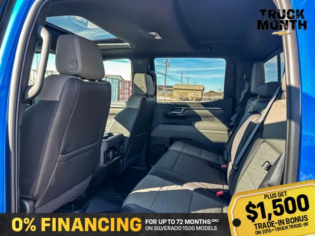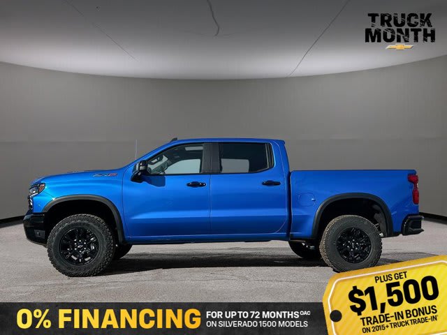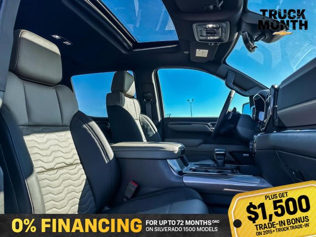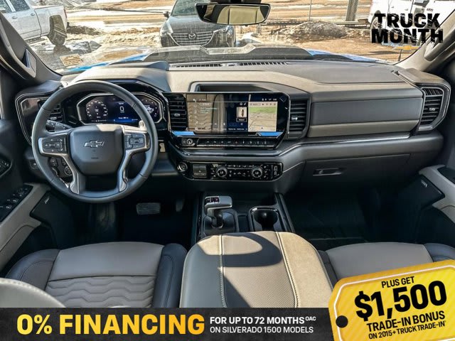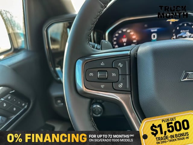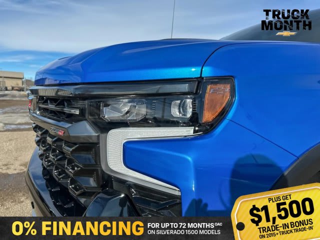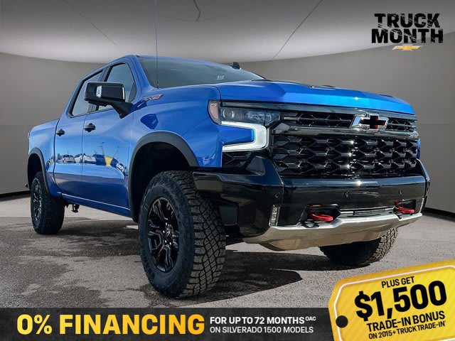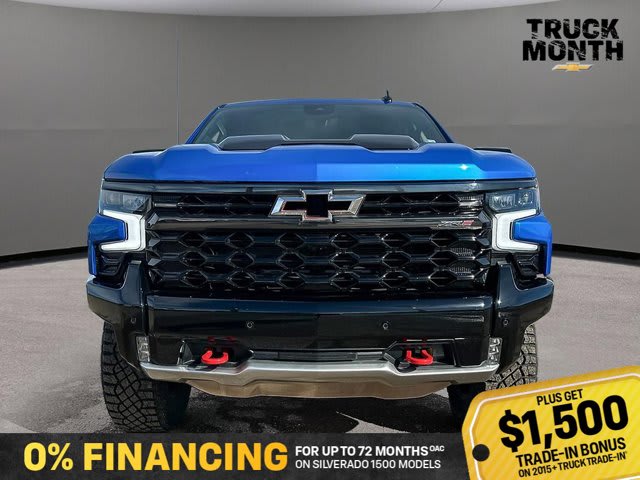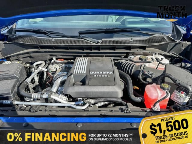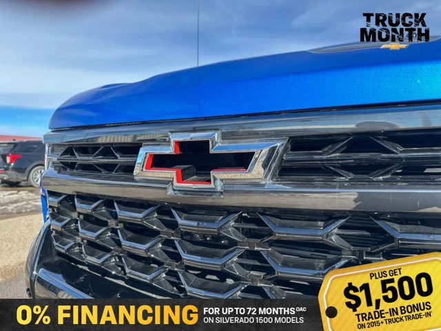 This Chevrolet Silverado 1500 boasts a Turbocharged Diesel I6 3.0L/ engine powering this Automatic transmission. ZR2 PREFERRED EQUIPMENT GROUP includes standard equipment, WHEELS, 18 X 8.5 (45.7 CM X 21.6 CM) GLOSS BLACK ALUMINUM, TRANSMISSION, 10-SPEED AUTOMATIC WITH ELECTRONIC TRANSMISSION RANGE SELECTOR (ETRS), electronically controlled with overdrive, tow-haul mode and steering column paddle shifters. Includes Cruise Grade Braking and Powertrain Grade Braking (STD).*This Chevrolet Silverado 1500 Comes Equipped with These Options *SUNROOF, POWER on Crew Cab models, RIPTIDE BLUE METALLIC, REAR AXLE, 3.23 RATIO, LICENSE PLATE KIT, FRONT, JET BLACK/GRAYSTONE, PERFORATED LEATHER SEATING SURFACES, GVWR, 7300 LBS. (3311 KG) (STD), ENGINE, DURAMAX 3.0L TURBO-DIESEL I6 (305 hp [227 kW] @ 3750 rpm, 495 lb-ft of torque [671 Nm] @ 2750 rpm) (Includes (KW5) 220-amp alternator and (K05) engine block heater.) (STD), Wireless phone projection for Apple CarPlay and Android Auto, Wireless Charging (Not compatible with all phones. Compliant batteries include Qi and PMA technologies. Reference Mobile devices manual to confirm what type of battery it uses.), Wipers, front rain-sensing.* Stop By Today *Live a little- stop by Bridges Chevrolet Buick GMC located at 2501 99th Street, North Battleford, SK S9A 2X6 to make this car yours today!