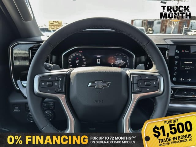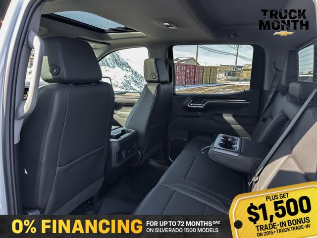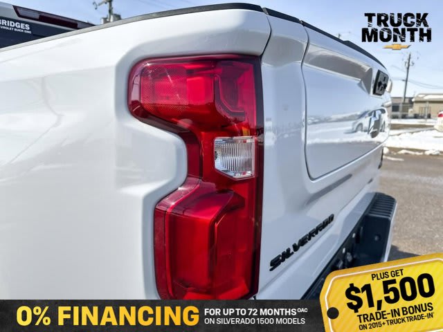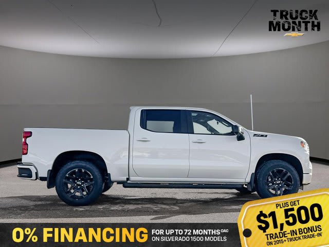 This Chevrolet Silverado 1500 delivers a Gas V8 5.3L/325 engine powering this Automatic transmission. Z71 OFF-ROAD PACKAGE includes (Z71) Off-Road suspension, (JHD) Hill Descent Control, (NZZ) skid plates and (K47) heavy-duty air filter Includes Z71 hard badge, (N10) dual exhaust, (RCV) 18 bright silver painted aluminum wheels, (XCK) 265/65/R18 all-terrain, blackwall tires and (NQH) 2-speed transfer case, WHEELS, 20 X 9 (50.8 CM X 22.9 CM) HIGH GLOSS BLACK PAINTED ALUMINUM, TRANSMISSION, 10-SPEED AUTOMATIC WITH ELECTRONIC TRANSMISSION RANGE SELECTOR (ETRS), electronically controlled with overdrive, tow-haul mode and steering column paddle shifters. Includes Cruise Grade Braking and Powertrain Grade Braking.* This Chevrolet Silverado 1500 Features the Following Options *SAFETY PACKAGE includes (UV2) HD Surround Vision, (UD5) Front and Rear Park Assist, (TRG) Trailer Camera Provisions, (UKV) Trailer Side Blind Zone Alert, (UFB) Rear Cross Traffic Braking, (UKK) Rear Pedestrian Alert and (U12) Perimeter Lighting, PROTECTION PACKAGE includes (B1J) wheel house liners and (CGN) Chevytec spray-on bedliner, LPO, DARK ESSENTIALS PACKAGE includes (RIK) Black Silverado nameplates, along with where applicable, Black Custom/LT/RST/LTZ/High Country/6.2L/Duramax badges, LPO and (SB7) Black tailgate CHEVROLET lettering, LPO, (dealer-installed), LEATHER PACKAGE Includes (SNR) Up-level Rear Seat with Storage Package., CONVENIENCE PACKAGE II includes (UG1) Universal Home Remote, (A48) rear sliding power window, (PZ8) Hitch Guidance with Hitch View and (UET) Trailering App Includes (UQA) Bose Premium Sound System.) , TAILGATE, MULTI-FLEX with six functional load/access features, NOTE: Auto release can be disabled if ball hitch is installed. See Owner’s manual for details, SUNROOF, POWER on Crew Cab models, SUMMIT WHITE, SEATS, FRONT BUCKET with centre console (Includes (EPH) Electronic Transmission Range Selector (console mounted)., RST PREFERRED EQUIPMENT GROUP includes standard equipment.* Visit Us Today *Live a little- stop by Bridges Chevrolet Buick GMC located at 2501 99th Street, North Battleford, SK S9A 2X6 to make this car yours today!