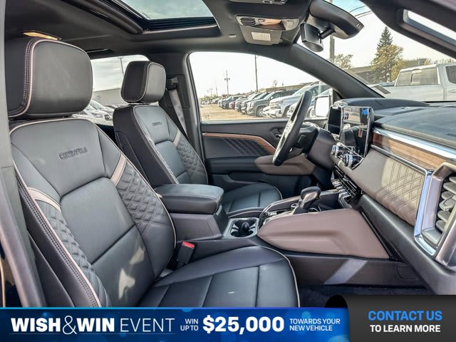 This GMC Canyon delivers a Turbocharged Gas I4 2.7L/ engine powering this Automatic transmission. WHEELS, 20 X 9 ALUMINUM TRANSIT WHEELS, TRANSMISSION, 8-SPEED AUTOMATIC, 8L80 (STD), SUNROOF, POWER INNER SLIDING GLASS with manual shade.*This GMC Canyon Comes Equipped with These Options *REAR AXLE, 3.42 RATIO, ONYX BLACK, LPO, GMC BLACK CHROME EXHAUST TIP (dealer-installed), LPO, BLACK BADGES (dealer-installed), LPO, BLACK ASSIST STEP (dealer-installed), LPO, ALL-WEATHER FLOOR LINER, 1ST AND 2ND ROWS includes GMC logo, (dealer-installed), JET BLACK/TEAK, PERFORATED LEATHER-APPOINTED SEAT TRIM, ENGINE, TURBOMAX (310 hp [231 kW] @ 5600 rpm, 430 lb-ft of torque [583 Nm] @ 3000 rpm) (STD), ENGINE BLOCK HEATER, DENALI PREFERRED EQUIPMENT GROUP includes standard equipment.* Stop By Today *A short visit to Bridges Chevrolet Buick GMC located at 2501 99th Street, North Battleford, SK S9A 2X6 can get you a dependable Canyon today!