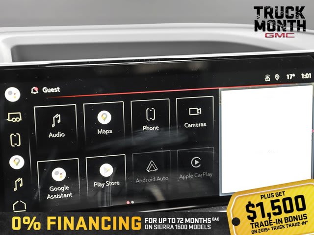 This GMC Sierra 1500 boasts a Gas V8 5.3L/325 engine powering this Automatic transmission. X31 OFF-ROAD AND PROTECTION PACKAGE includes (X31) Off-Road Package, (CGN) spray-on bedliner and (RIA) All-weather floor liners, LPO, TRANSMISSION, 10-SPEED AUTOMATIC WITH ELECTRONIC PRECISION SHIFT, ELECTRONICALLY CONTROLLED with overdrive, and tow/haul mode and steering column paddle shifters. Includes Cruise Grade Braking and Powertrain Grade Braking, SEATS, FRONT BUCKET with centre console (Includes (D07) centre console and (K4C) Wireless charging..* This GMC Sierra 1500 Features the Following Options *ELEVATION PREMIUM PACKAGE includes (PDQ) Preferred Package, (H0Y) Jet Black Leather interior, (SNR) Up-level Rear with Storage Package seat, (PED) Sierra Safety Plus Package, (RIA) All Weather Floormats, LPO and, (CGN) spray-on bedliner , LPO, BLACK TUBULAR ASSIST STEPS, 6 RECTANGULAR (dealer-installed), LPO, ALL-WEATHER FLOOR LINER, 1ST AND 2ND ROWS (dealer-installed), GVWR, 7100 LBS. (3221 KG), ENGINE, 5.3L ECOTEC3 V8 (355 hp [265 kW] @ 5600 rpm, 383 lb-ft of torque [518 Nm] @ 4100 rpm); featuring Dynamic Fuel Management, ENGINE BLOCK HEATER, ELEVATION PREFERRED EQUIPMENT GROUP includes standard equipment, BEDLINER, SPRAY-ON Pickup bedliner with GMC logo, 3 YEARS SIRIUSXM, Wireless, Apple CarPlay / Wireless Android Auto.* Stop By Today *For a must-own GMC Sierra 1500 come see us at Bridges Chevrolet Buick GMC, 2501 99th Street, North Battleford, SK S9A 2X6. Just minutes away!