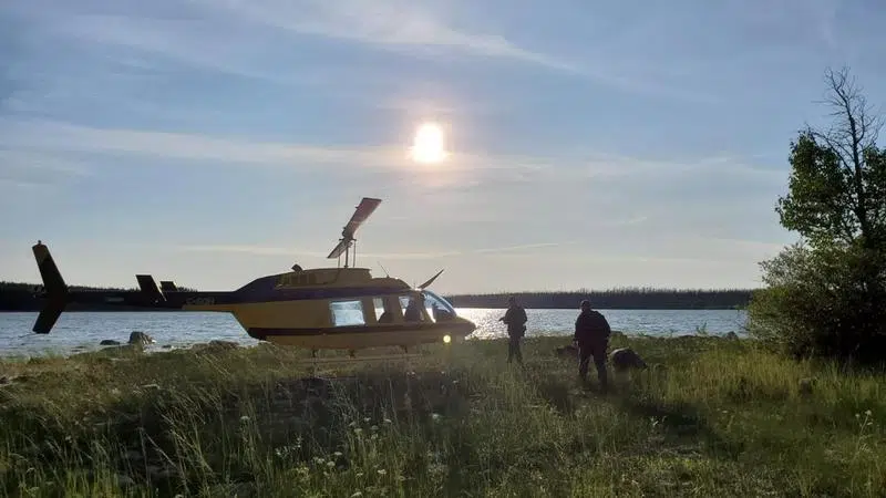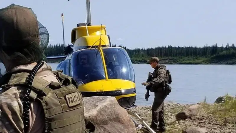 Jul 28, 2019 Officers look through a remote lake area alongside a landed helicopter in the Gillam, Man., area in July 28, 2019, police image published to social media. (THE CANADIAN PRESS/HO-Twitter, Royal Canadian Mounted Police, @rcmpmb)